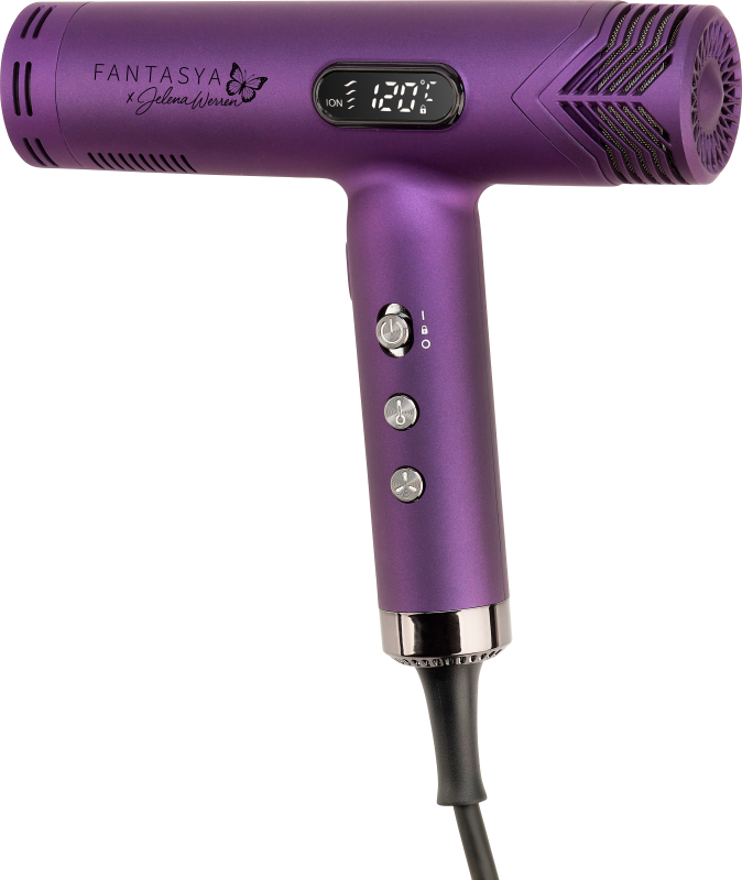 Der FANTASYA Haartrockner in der Jelena-Werren-Edition vereint hochmoderne Technologie mit ästhetischem Anspruch – im ikonischen Magic-Lila-Finish für den Wow-Effekt am Arbeitsplatz.