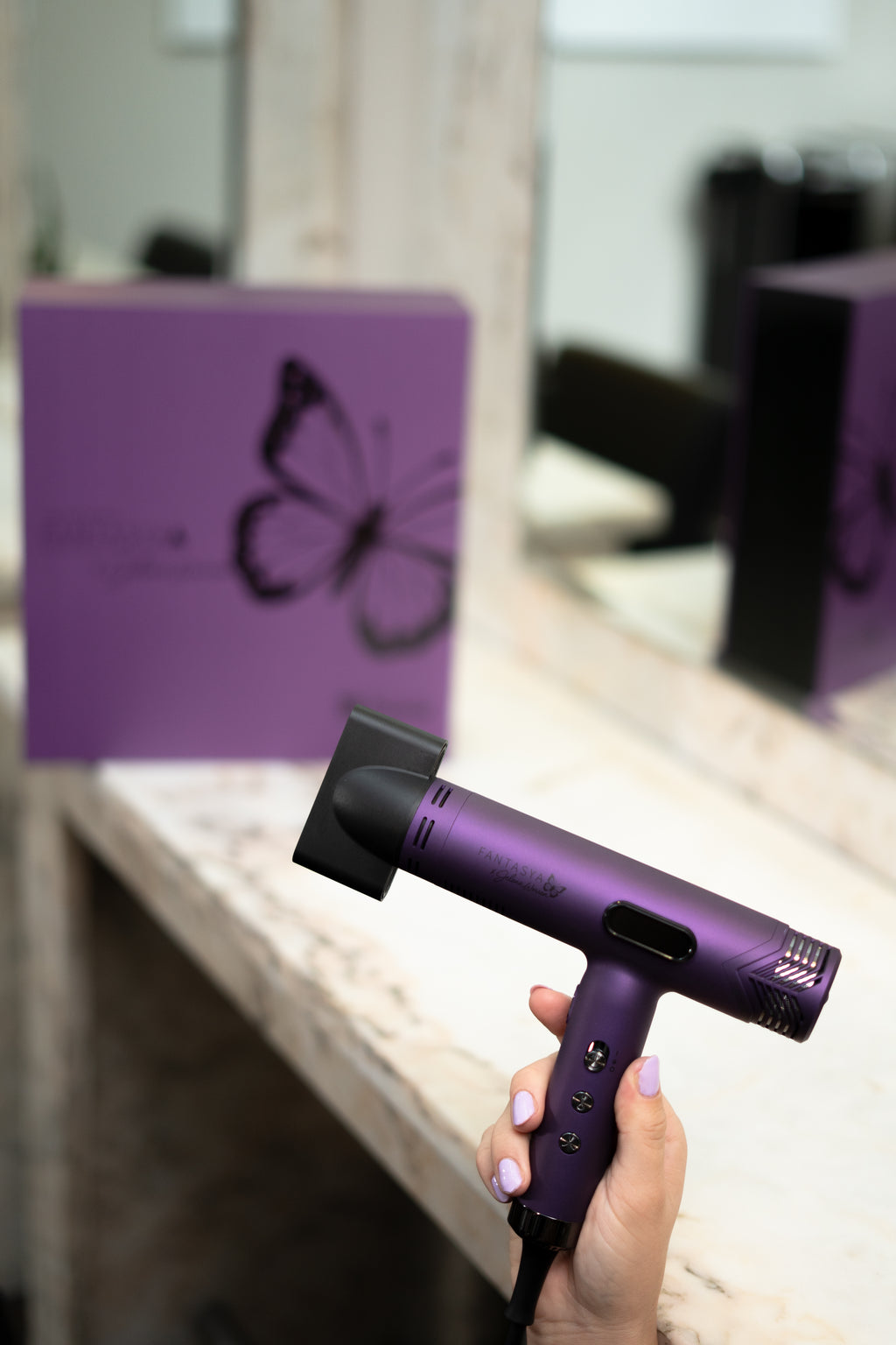 Der FANTASYA Haartrockner in der Jelena-Werren-Edition vereint hochmoderne Technologie mit ästhetischem Anspruch – im ikonischen Magic-Lila-Finish für den Wow-Effekt am Arbeitsplatz.